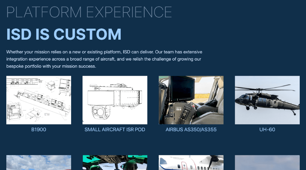 The new site organizes their service offerings, from EO/IR and RADAR systems to SATCOM and full mission-system integration, into intuitive sections, allowing prospective clients and partners to easily navigate and access the information most relevant to their needs.